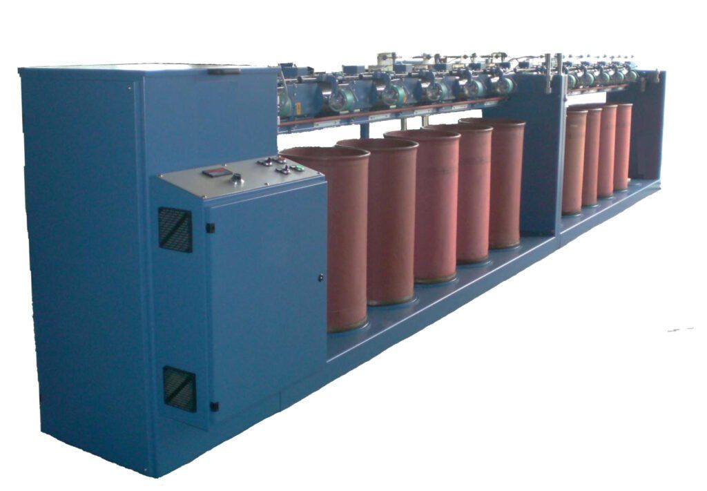 This machine guarantees the production of voluminous hand knitting balls. It can be used in conjunction with hank expanders or with above-machine-mounted hank unwinders (type TW). Winding speed 200-600 m/min.