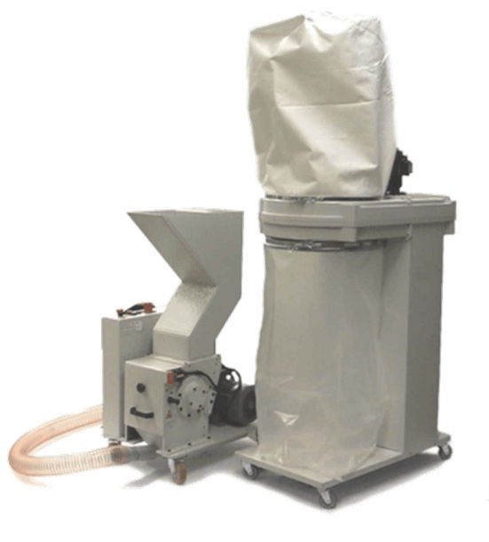 With the actual trend of increasing security requirements in industrial applications and established top security requirements at government entities and the security printing sector, documents need to be cut to tiny particles. Disintegrators are equipped with one cutting shaft, the so called rotor, and use the same rugged knives for all security levels. Between rotor knives (sitting on the rotor) and static bed knives (sitting in the chassis) the shredding material is cut into randomly sized pieces like in a chipper. A screen below the rotor keeps all shreds within the cutting chamber around the rotor until they are cut small enough to pass through the holes of the screen and drop into a hopper underneath the screen. Exchanging the screen with another one with different perforation allows to adapt the final shred size of a disintegrator within a few minutes time. Usually the shreds are vacuumed and transported by an air-system and collected in plastic bags or compressed in mobile compactors or briquetting presses. JBF Disintegrators are perfectly adapted for reliable and economic destruction of paper + plastic materials like paper documents, secure documents like passports or bank notes, magnetic media like plastic cards or floppy disks as well as optical media like CD ́s or DVD ́s.