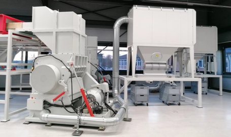 A control panel for the entire system ensures a fully automatic shredding process with one-hand operation. The entire system converts 5,000 kg/h of plastic material into 100 mm2 particles.
